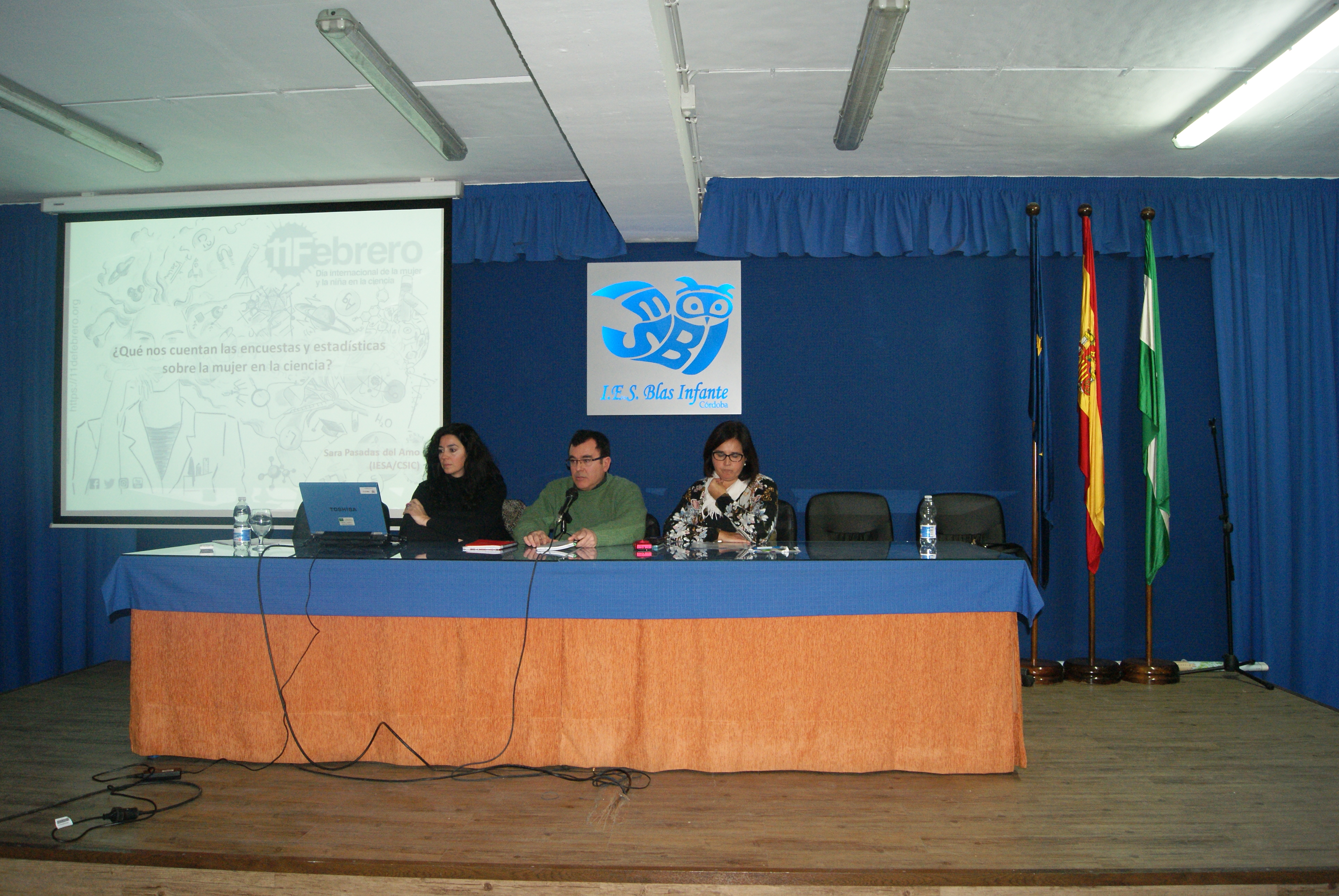 Para la ocasión, la socióloga Sara Pasadas del Amo disertó sobre lo que los datos estadísticos nos dicen sobre la brecha de género en la ciencia. El evento tuvo lugar en el salón de actos de nuestro IES Blas Infante de 10:30 a 11:30 y estuvo dirigido a todo el alumnado de 4º ESO y a 2º de FPB de informática.